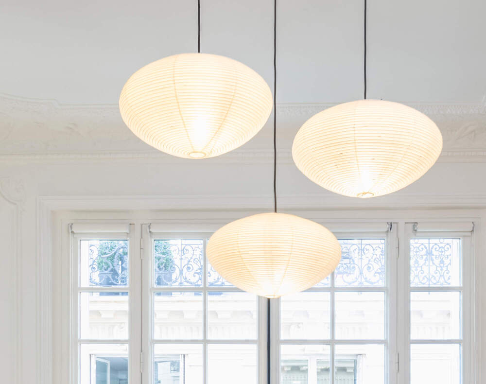 The pendant lamps are available in a wide range of sizes and shapes. Thanks to this versatility, they can be easily adapted to a specific space and combine beautifully with the floor and table versions from the Akari collection, allowing harmonious lighting compositions to be created throughout the interior.