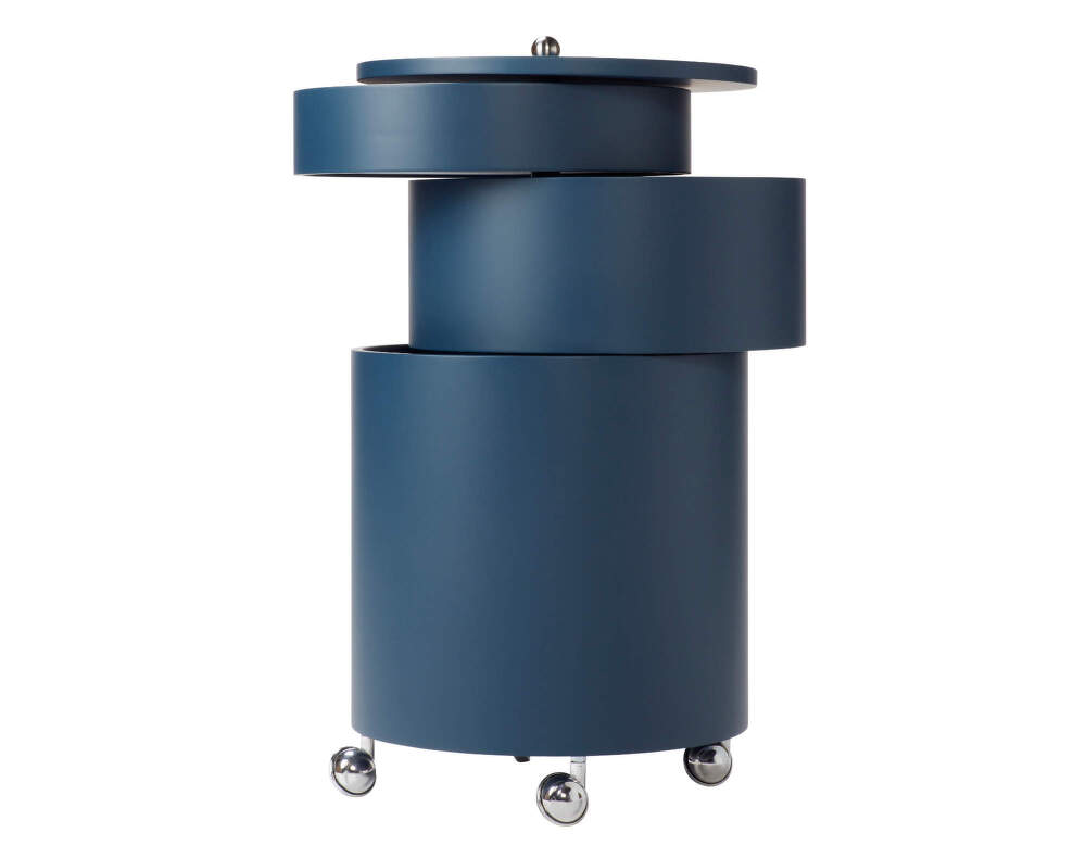 Barboy is not just a table, it is also a mobile storage unit on wheels. Three rotating cylindrical compartments provide generous space for small items, documents, bottles or personal belongings. Thanks to its wheeled base, it can easily be moved as needed, making it a flexible companion for everyday living.