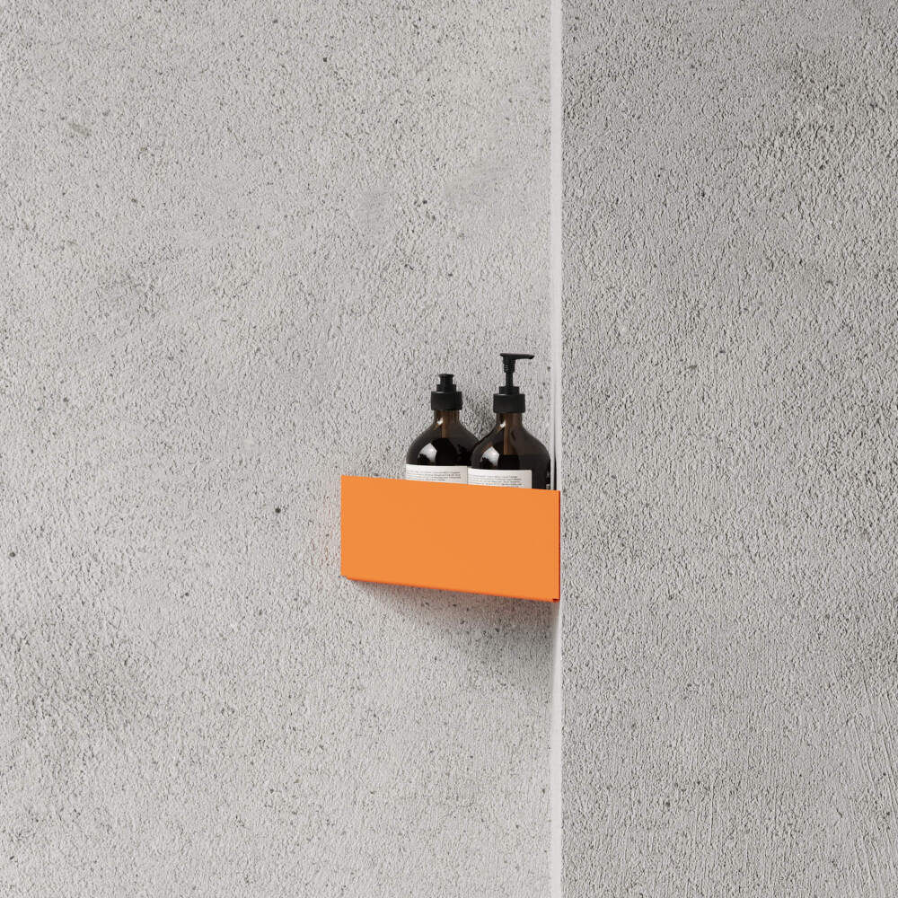 Minimalist Bath Shelf Corner shelf from Nichba in orange.