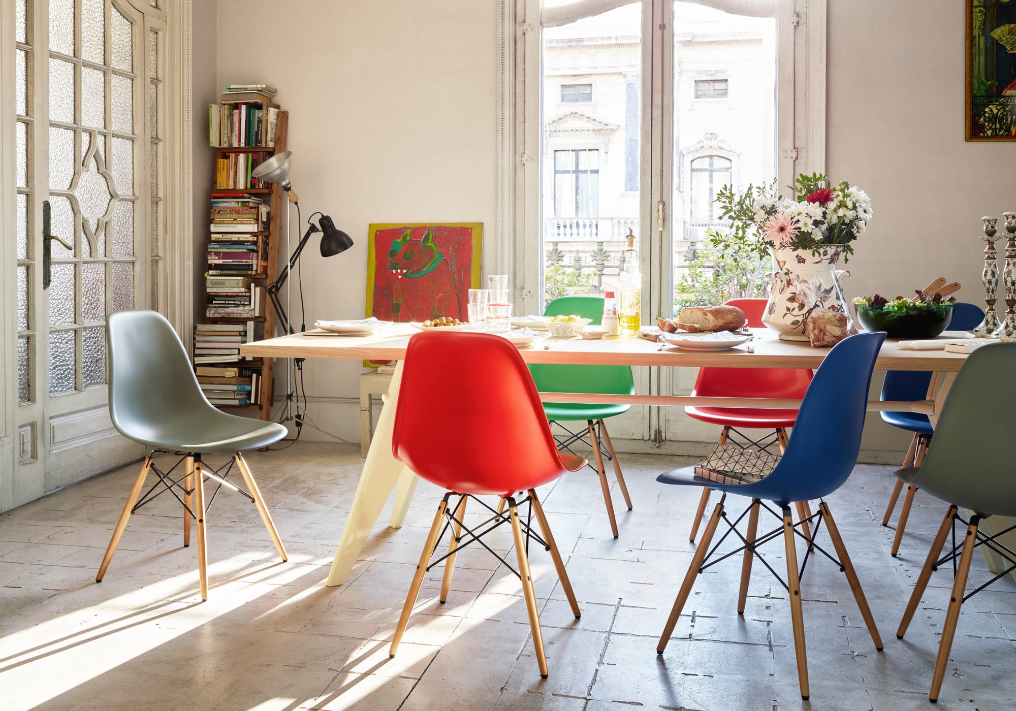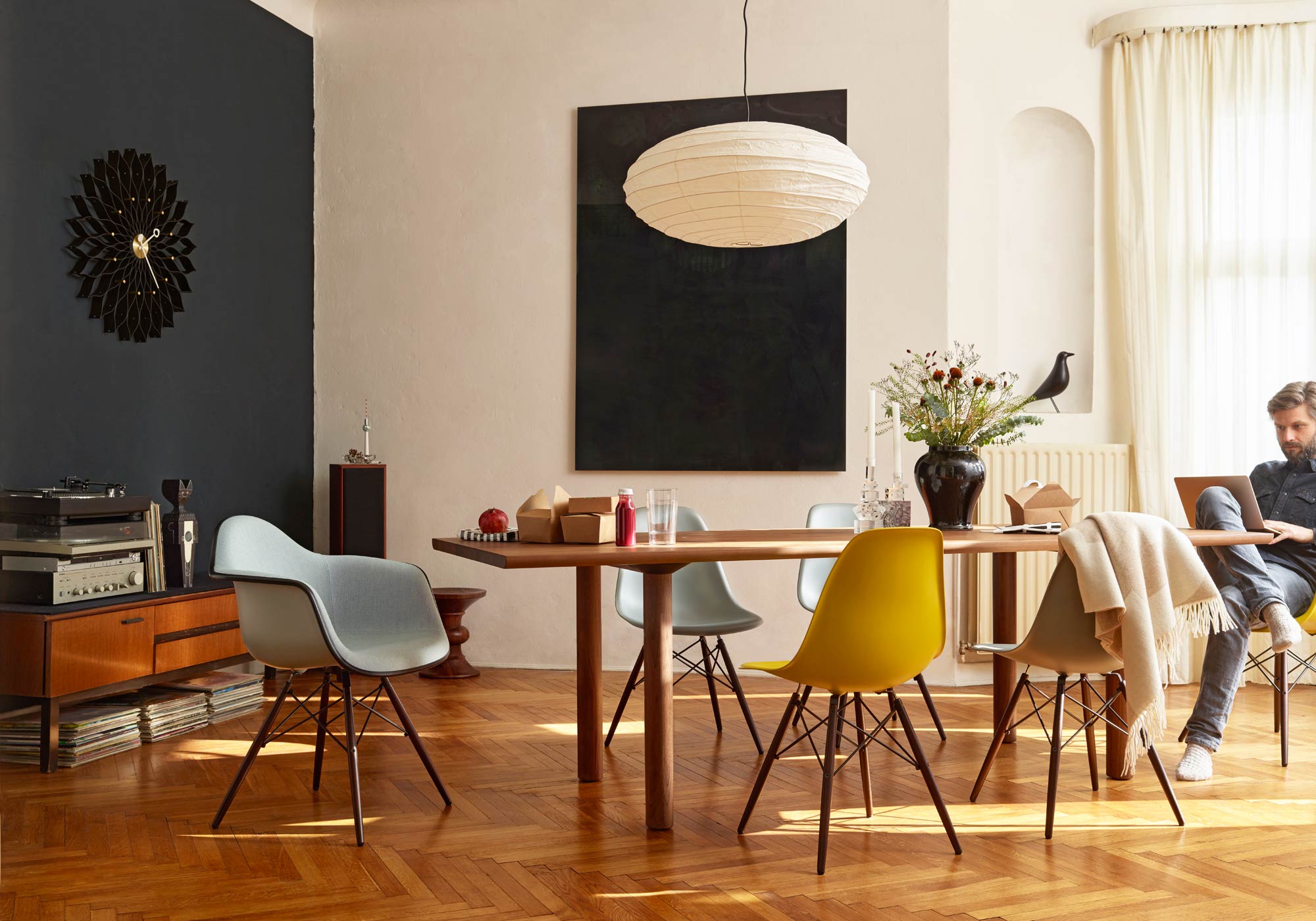 In the early days of production, Eames introduced several types of shells and bases that offered endless possibilities for the chair's use in the home, office and public spaces. As time went on, Vitra began to produce chairs made of stronger polypropylene in 14 colour options with wood or steel wire bases instead of the fragile fibreglass. This makes it easy to combine a chair that meets your vision of the perfect piece of furniture, which, thanks to its quality, will accompany you for decades to come.