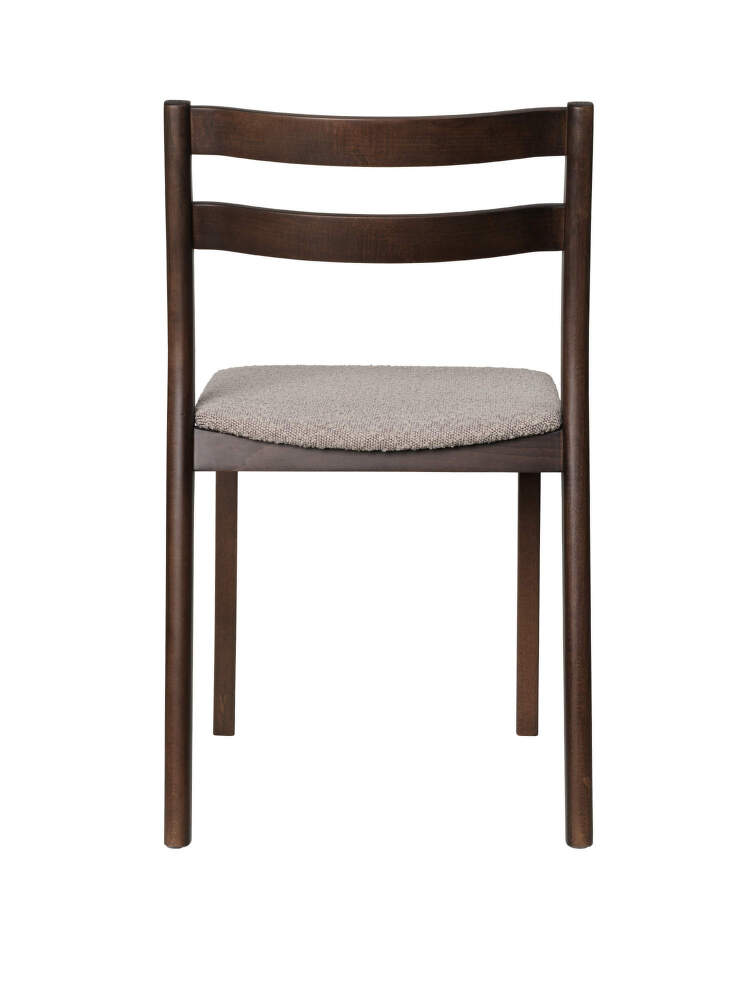 Minimalist wooden Boda dining chair with an upholstered seat from Danish brand Ferm Living. Finish: dark stained beech, natural upholstered seat in Rugged Bouclé fabric.