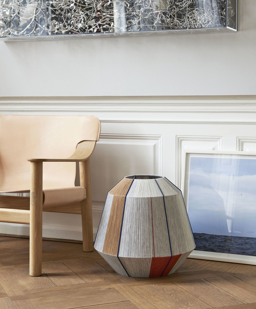 The Bonbon air lamp shade is made of a steel frame and hand-woven fabric (80% wool, 20% nylon).