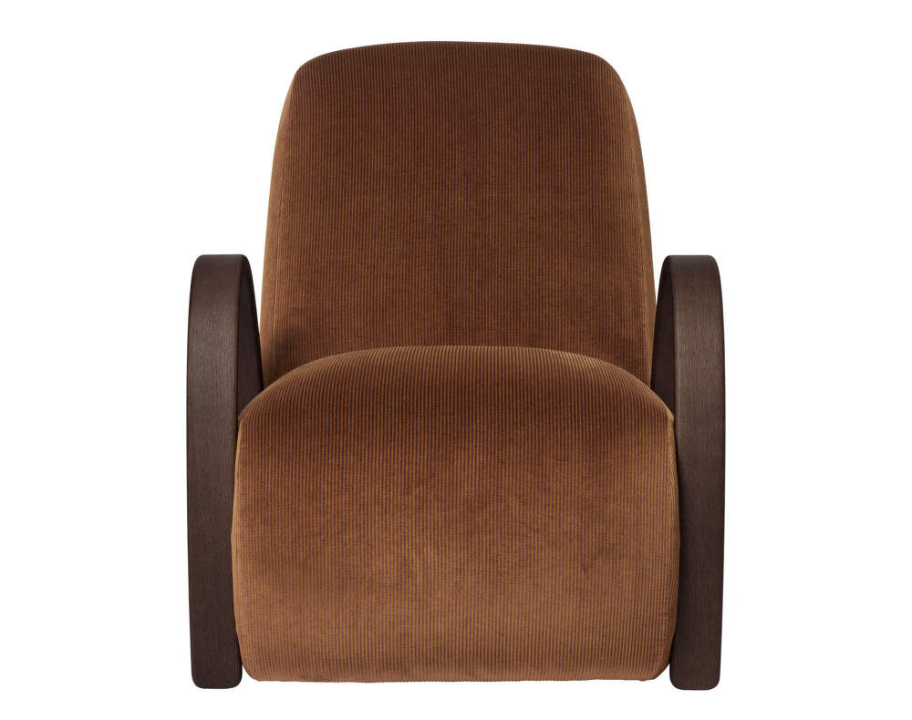 The Buur Lounge Chair with a soft, generously padded seat and backrest from Danish brand Ferm Living harmoniously combines elegance with comfort and will serve as a stunning statement piece in any room. Its distinctive design inspired by vintage lounge chairs with curved wooden armrests was designed by Says Who. With its smooth construction, the Buur Lounge Chair invites you to indulge in its upholstery and experience a truly enveloping embrace.
