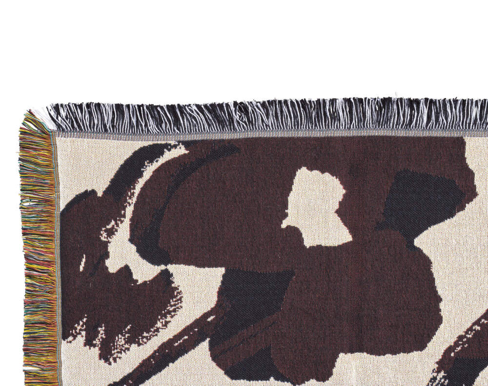 The Cilla blanket or tapestry stands out with its hand-painted floral motif, which translates delicate botanical shapes into textile form. It is woven using traditional tapestry techniques from 100% organic cotton with GOTS certification, giving it a perfectly pleasant texture.