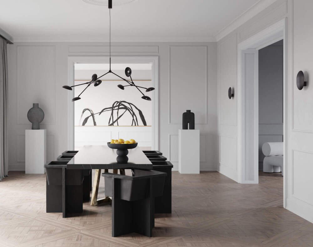 The shade is crafted from high-quality metal with a hand-polished finish that enhances its texture and lends the lamp a distinctive character. The Clam lamp works beautifully in living rooms, bedrooms, hallways, and hotel interiors, functioning as ambient lighting, a gentle visual accent, or a complement to central illumination.
