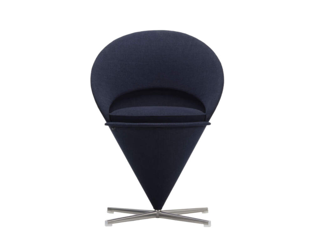 The Cone Chair ranks among Verner Panton’s most iconic designs and retains its strong, confident silhouette to this day. The cone-shaped form creates a solid architectural base from which a comfortably upholstered shell with backrest and armrests emerges. Compact in appearance, the design nevertheless offers a high level of seating comfort.