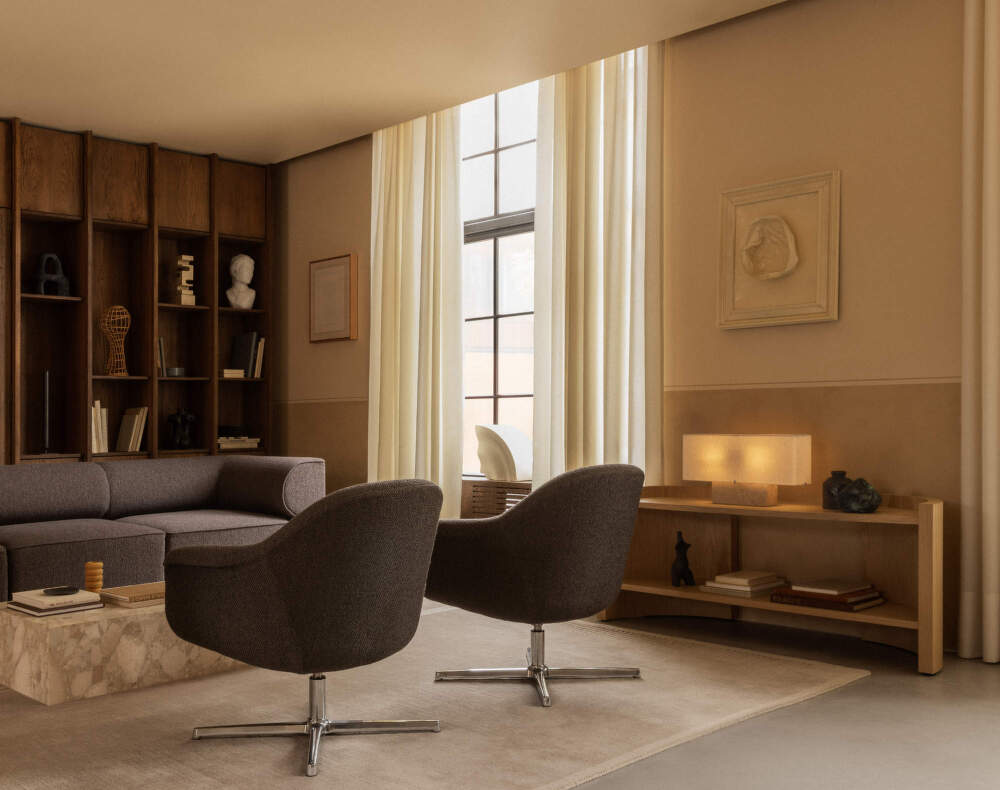 The Crescent shelf brings an unusual shape to the interior, shifting the perception of storage space towards a more expressive, almost sculptural element. The rounded, crescent-inspired silhouette looks elegant, while the open back maintains an airy feel and allows light to pass freely through.