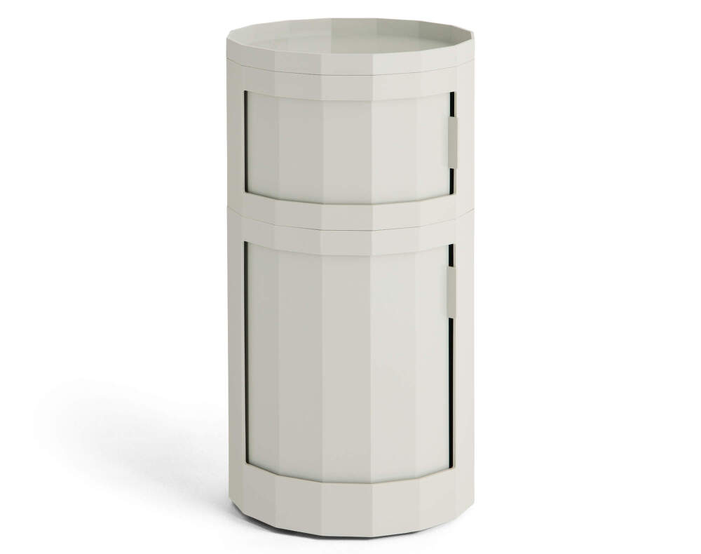 Taller multifunctional Facet Cabinet 110 with feet and two doors, created by Dutch designer Stefan Scholten for Danish brand HAY. Colour: misty grey.