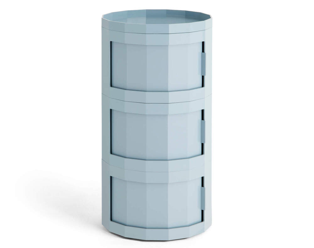 Taller multifunctional Facet Cabinet 30 with feet and three doors, created by Dutch designer Stefan Scholten for Danish brand HAY. Colour: misty blue.