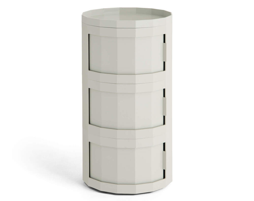 Taller multifunctional Facet Cabinet 30 with feet and three doors, created by Dutch designer Stefan Scholten for Danish brand HAY. Colour: misty grey.