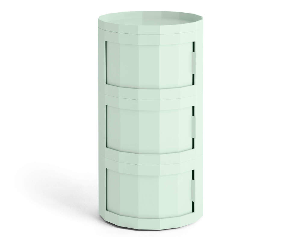 Taller multifunctional Facet Cabinet 30 with feet and three doors, created by Dutch designer Stefan Scholten for Danish brand HAY. Colour: soft mint.