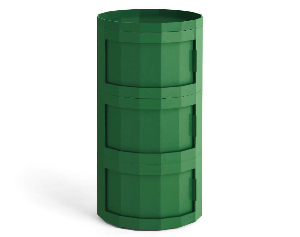 Taller multifunctional Facet Cabinet 30 with feet and three doors, created by Dutch designer Stefan Scholten for Danish brand HAY. Colour: spinach green.