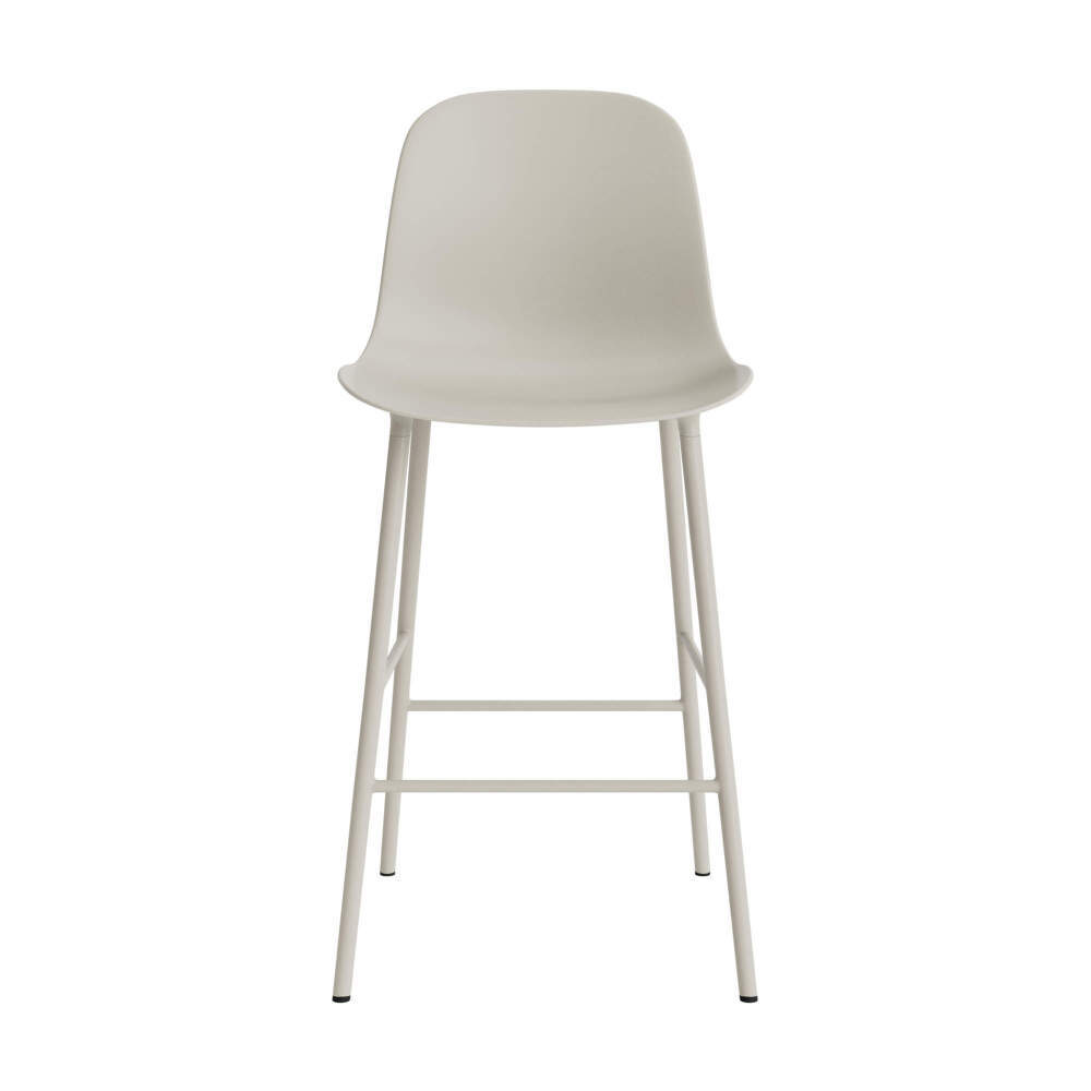 Bar stool with backrest from Form series by Normann Copenhagen in light grey finish. Seat height: 65 cm.