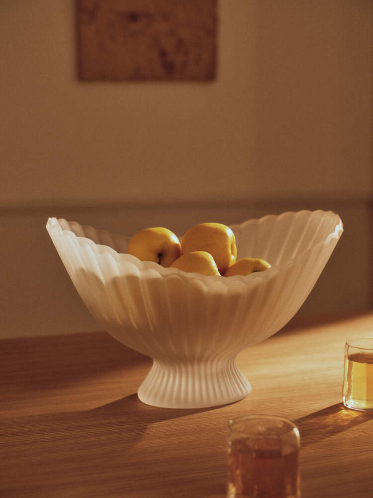 Fountain Centrepiece is a raised bowl with a gently pleated structure that immediately draws attention. Its elegant shape is inspired by the silhouette of classical fountains, giving the object a distinctive yet balanced character.