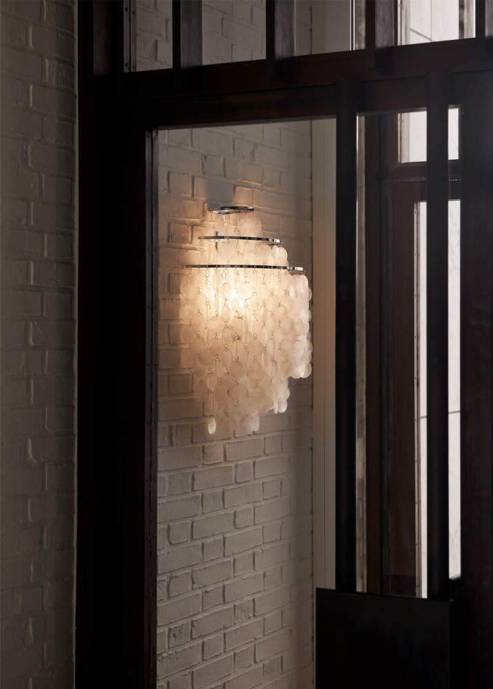 The Fun wall lamp is one of Verner Panton’s iconic designs from the mid-1960s. Like the other versions in the collection, it works with movement, texture and light as defining elements. On the wall, it appears as a light, almost jewellery-like object that adds a subtle sense of movement to the space.