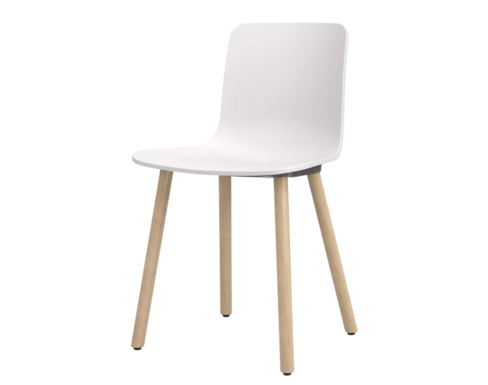 HAL Wood chair was designed for Vitra by designer Jasper Morrison, who aimed to create a simple yet design-led chair. Finish: natural oak wood base, cotton white plastic seat.