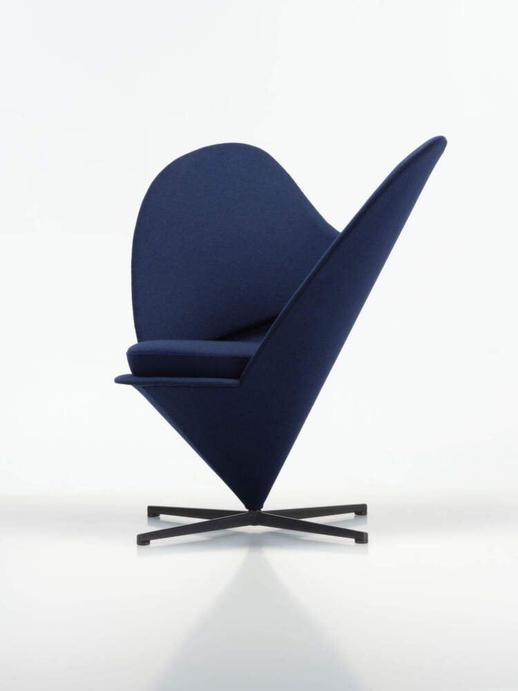 Designed by Verner Panton in the late 1950s, the Heart Cone Chair naturally builds on the original concept of cone-shaped seating. Today, it stands as a distinctive statement piece – a lounge chair that is sure to draw attention within a space.