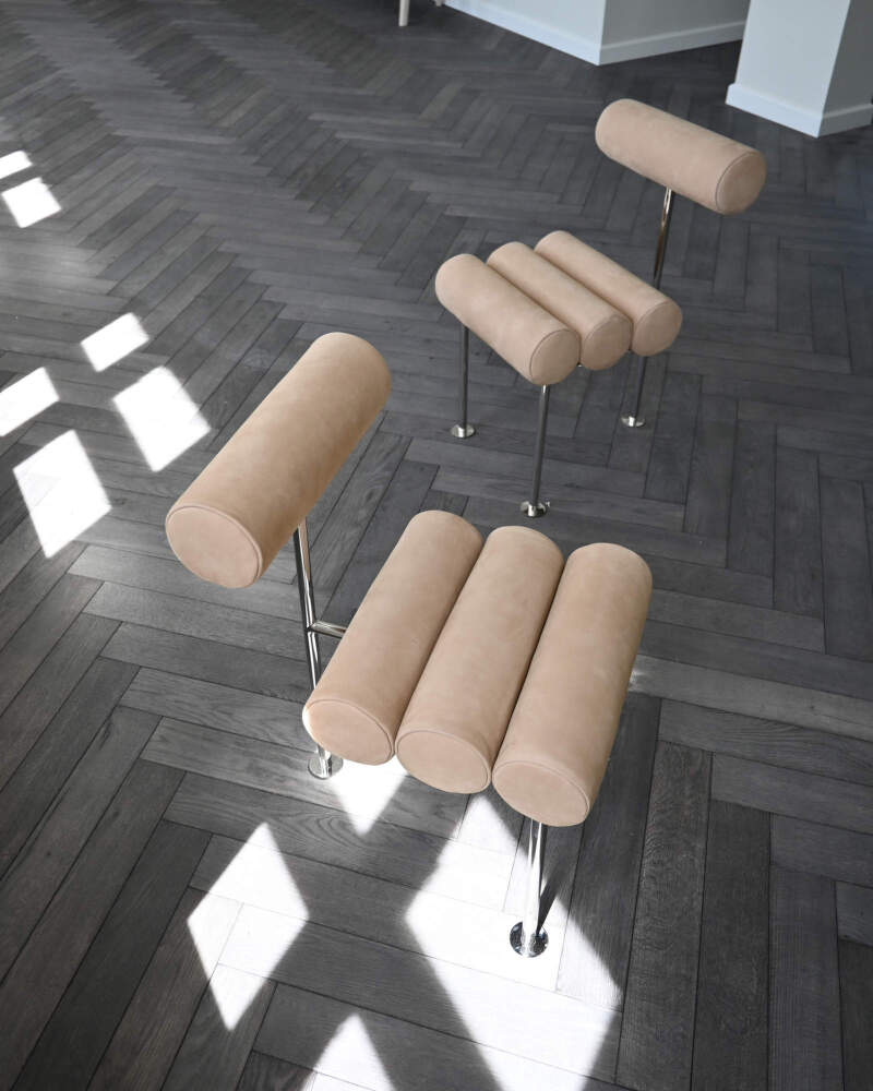 The Hiro dining chair captivates with its elegant silhouette, which combines functionality with aesthetic purity. The three-legged construction appears airy, yet provides stable and comfortable seating. A characteristic feature is the cylindrical backrest, which also serves as a practical handle for easy movement of the chair.