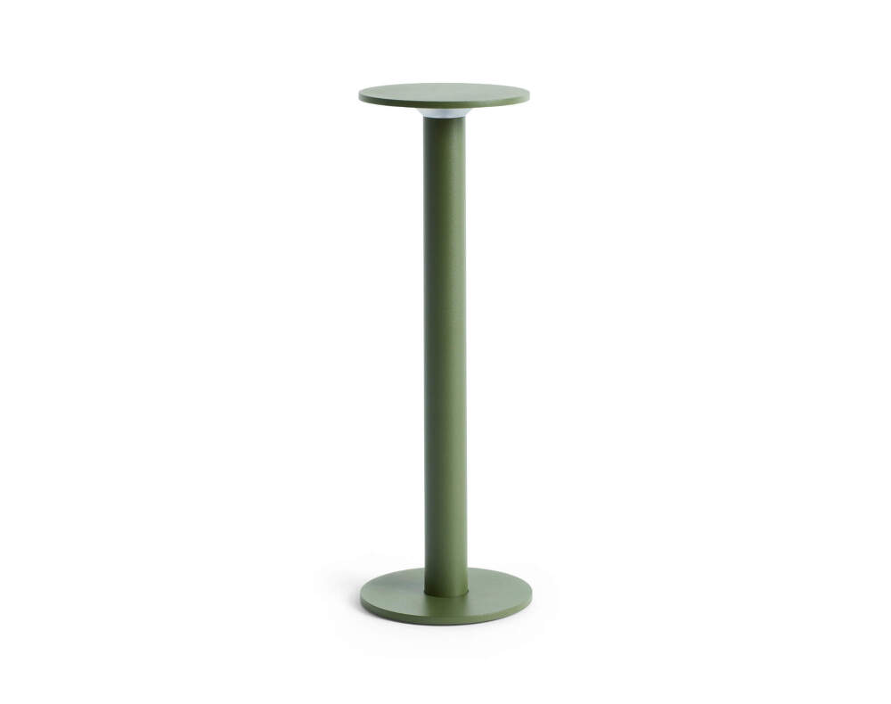 Minimalist portable table lamp Host 300 from Danish brand HAY. Colour: olive.