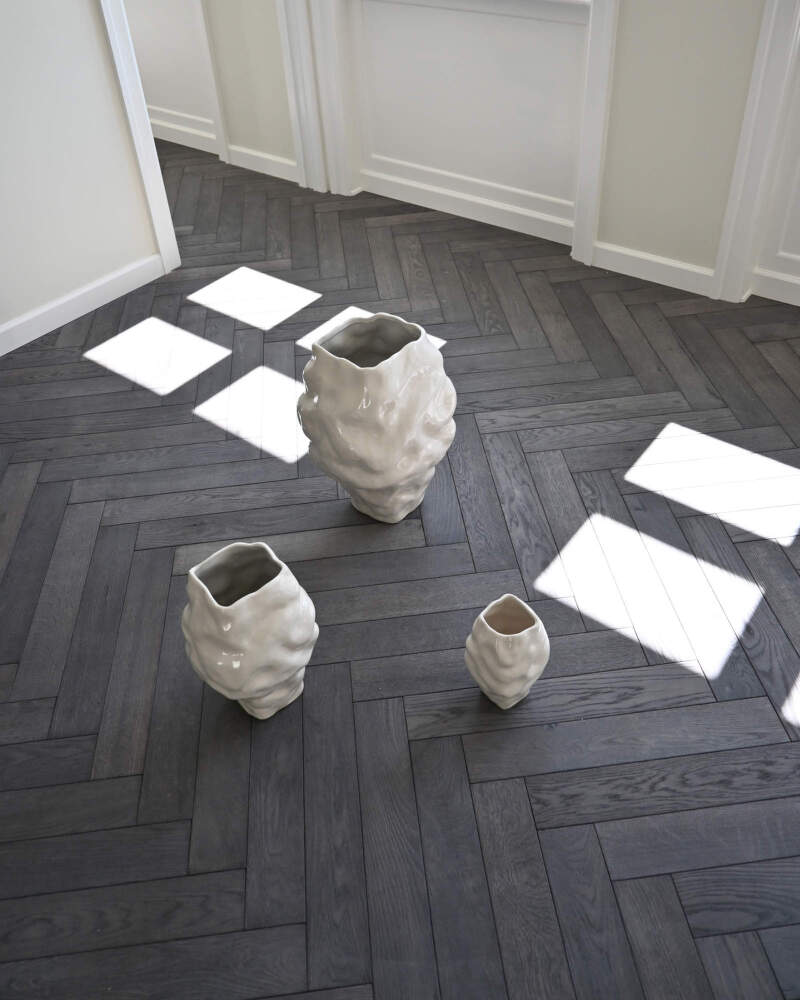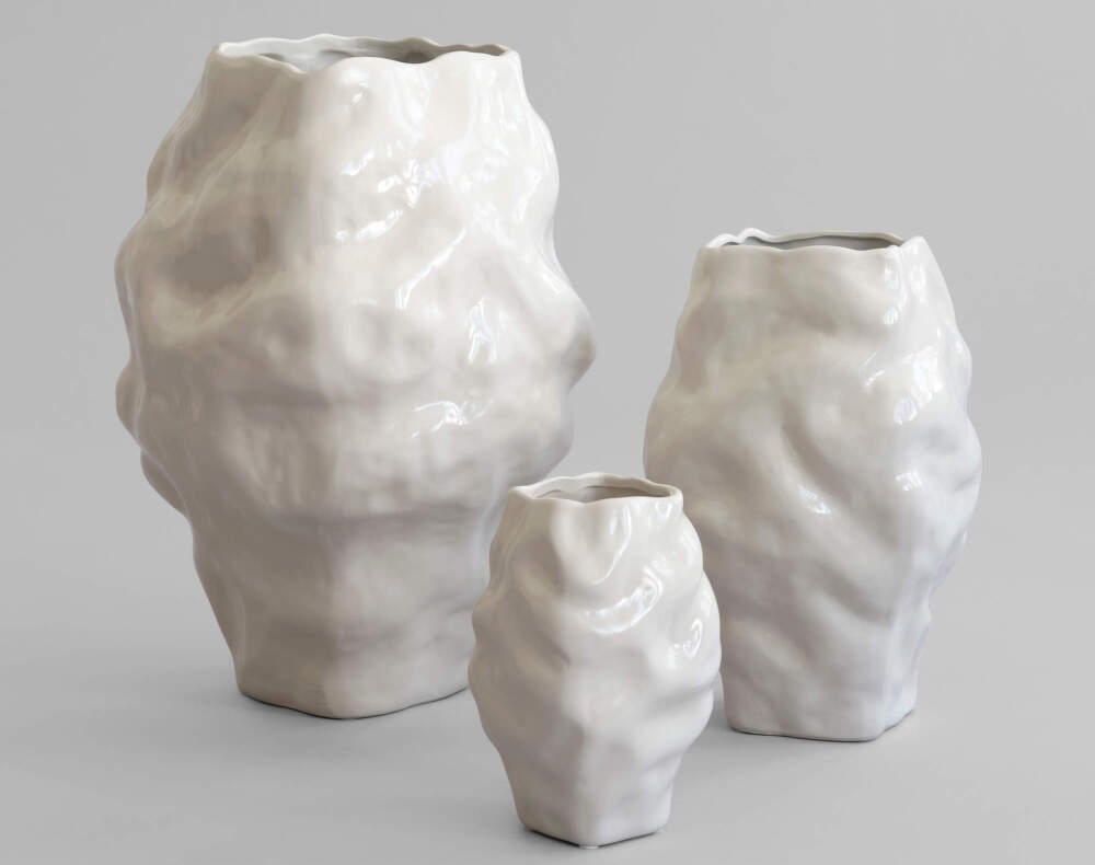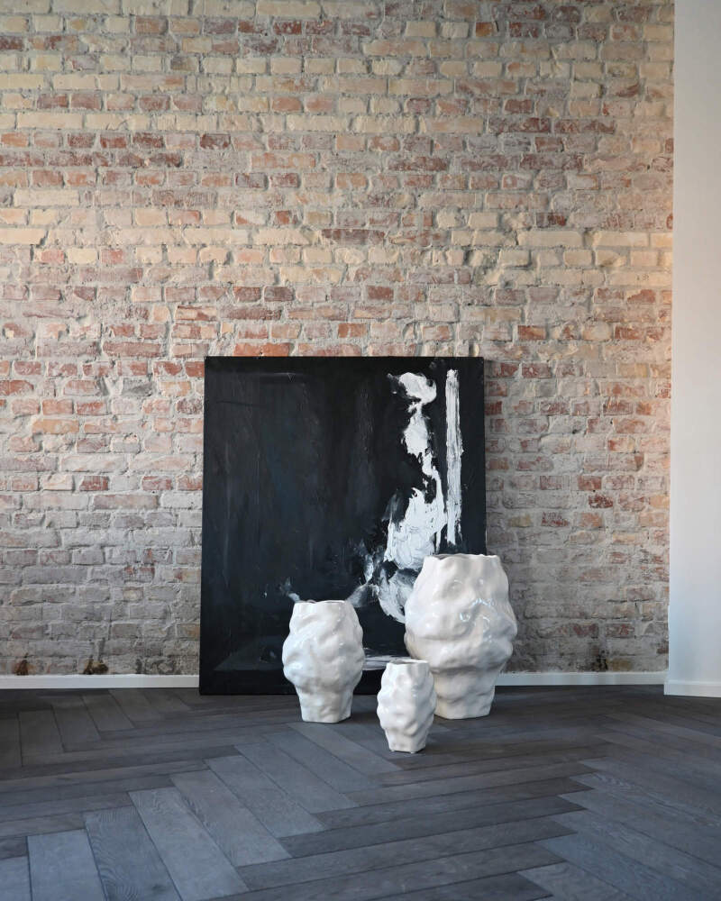 The Karachi Big vase is the largest version in the collection, which explores the interplay of shape, light, and material. It is hand-shaped and glazed, giving it its unique character. The combination of glossy glaze and organic curves creates an impression of natural elegance and gives the vase a decorative and artistic dimension.