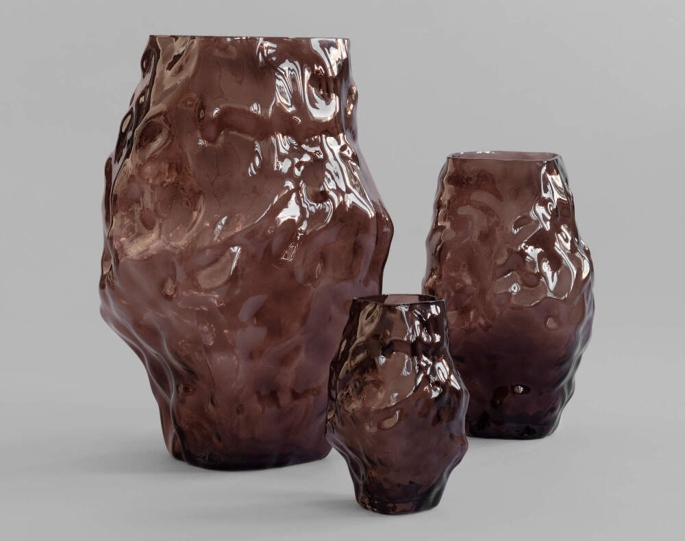 The Karachi Medio vase is the medium version in the collection, which explores the interplay of shape, light, and material. It is made of hand-blown glass with a slightly irregular surface that refracts light and scatters it into soft reflections.