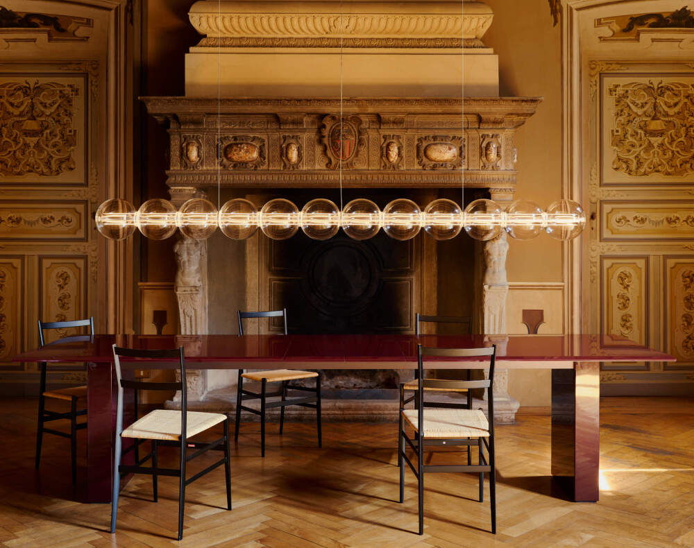 Luce Sferica S3 linear glass suspension light, designed by Ronan Bouroullec for Italian brand Flos.