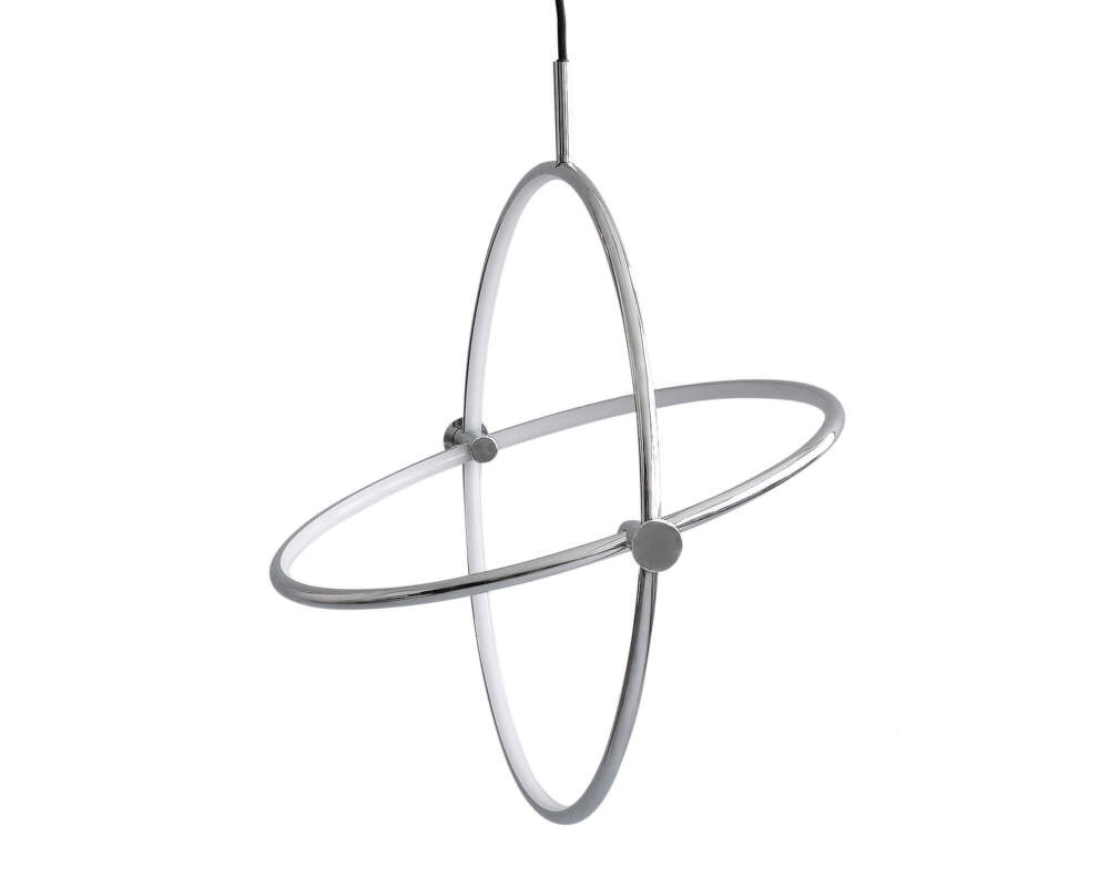 Each lamp consists of two interconnected circles with integrated LED lighting that gently illuminates their inner contours. Flexible joints allow movement of the inner circle, giving the luminaire not only a dynamic appearance but also variability in arrangement.