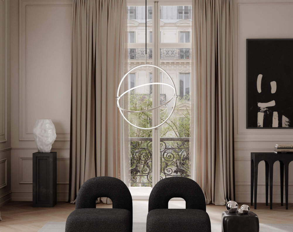 The Maru pendant light brings a combination of precise geometry, movement and warm illumination to the interior. Its characteristic circular design is based on the principles of minimalist art and is inspired by Japanese aesthetics, where "maru" means circle or circumference.