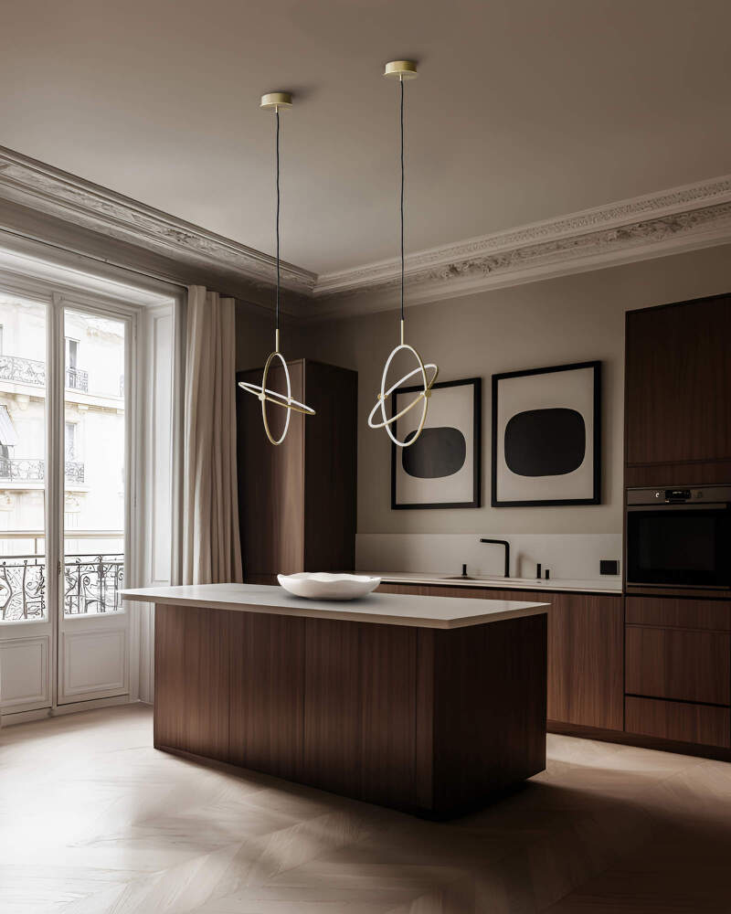 The Maru pendant light brings a combination of precise geometry, movement and warm illumination to the interior. Its characteristic circular design is based on the principles of minimalist art and is inspired by Japanese aesthetics, where "maru" means circle or circumference.