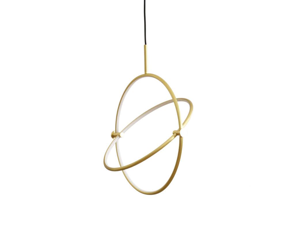 Each lamp consists of two interconnected circles with integrated LED lighting that gently illuminates their inner contours. Flexible joints allow movement of the inner circle, giving the luminaire not only a dynamic appearance but also variability in arrangement.