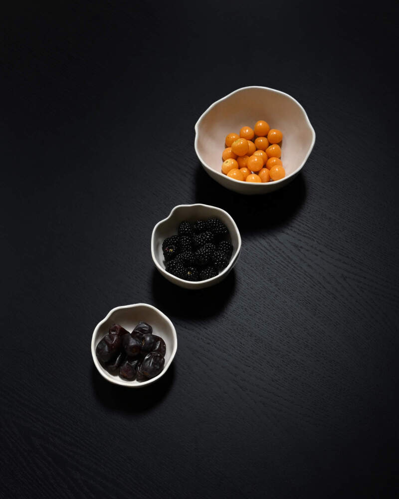 The set includes three Native bowls – Petite (Ø10.5 cm), Mini (Ø12 cm) a Medio (16.5 cm) – which can easily be combined with other pieces from the Native collection to create a harmonious table setting.