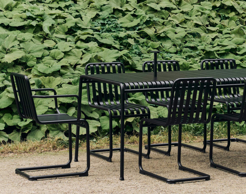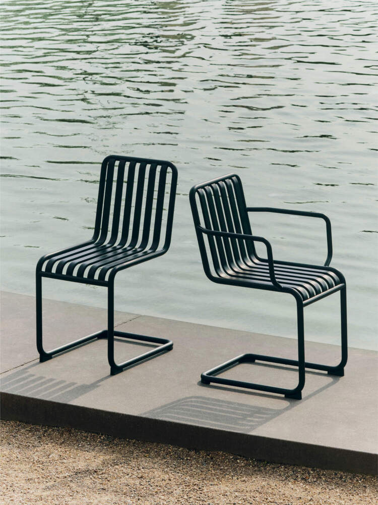 The Palissade Cantilever collection introduces a new interpretation of HAY’s iconic outdoor furniture, featuring a cantilevered construction that lends the familiar silhouette a lighter, subtly flexible character. The base without rear legs creates a floating effect, allowing the seat to respond gently to the movement of the body when sitting down. The result is a surprisingly comfortable and dynamic seating experience that remains true to the design language of the original Palissade series.