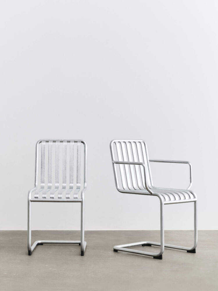 The Palissade Cantilever collection introduces a new interpretation of HAY’s iconic outdoor furniture, featuring a cantilevered construction that lends the familiar silhouette a lighter, subtly flexible character. The base without rear legs creates a floating effect, allowing the seat to respond gently to the movement of the body when sitting down. The result is a surprisingly comfortable and dynamic seating experience that remains true to the design language of the original Palissade series.