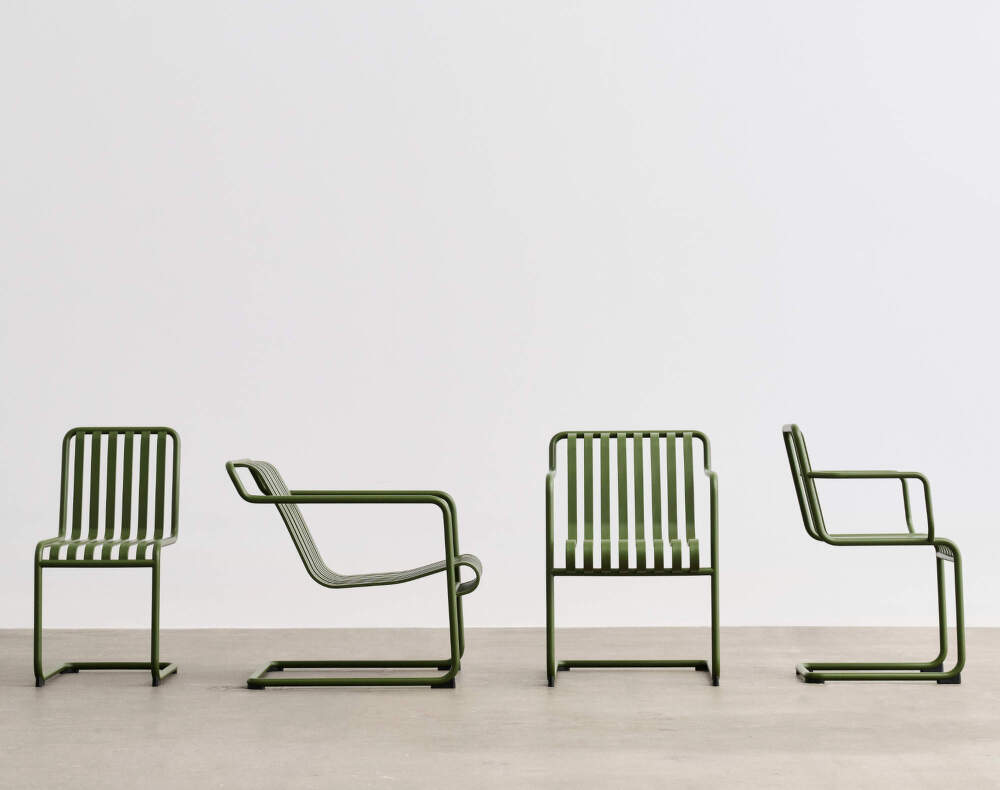 The Palissade Cantilever collection introduces a new interpretation of HAY’s iconic outdoor furniture, featuring a cantilevered construction that lends the familiar silhouette a lighter, subtly flexible character. The base without rear legs creates a floating effect, allowing the seat to respond gently to the movement of the body when sitting down. The result is a surprisingly comfortable and dynamic seating experience that remains true to the design language of the original Palissade series.