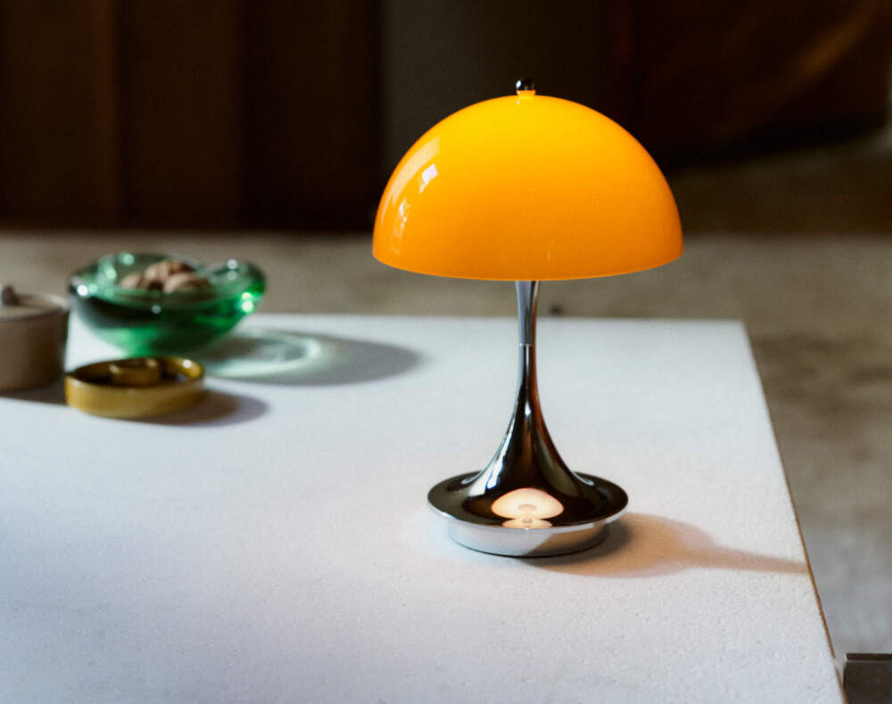 Panthella 160 Portable Lamp V3, chrome original opal orange