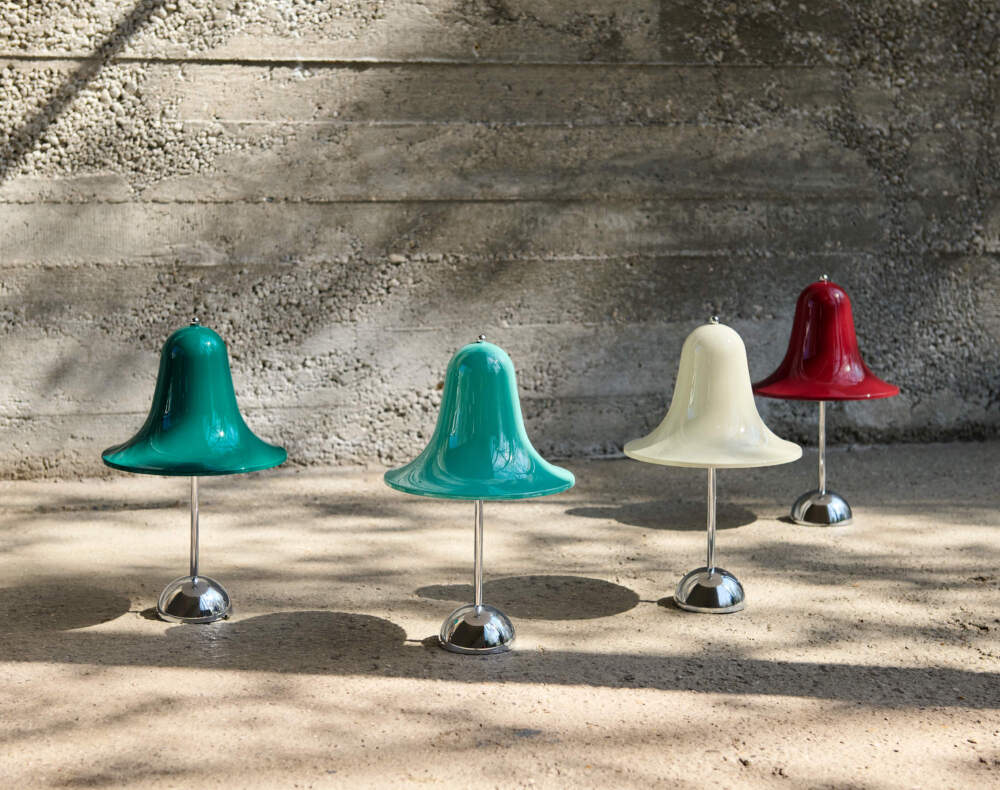 The Pantop portable lamp is based on Verner Panton’s iconic 1980 design, translating its characteristic bell-shaped silhouette into a contemporary, mobile format. It retains the distinctive form and directed light while offering freedom of movement without the need for a fixed power connection.