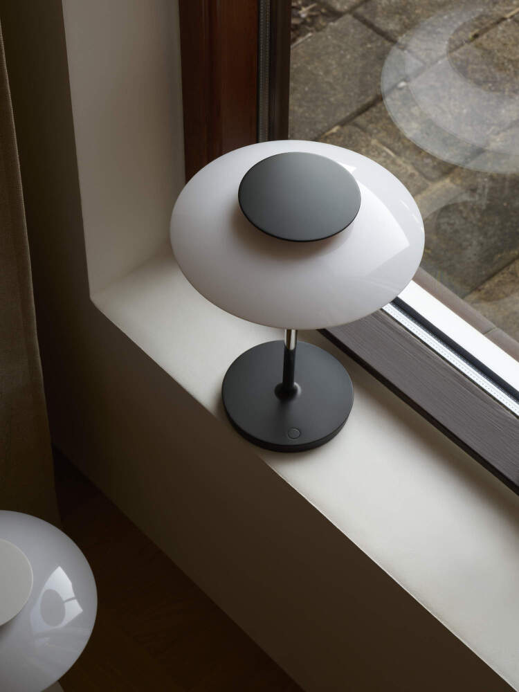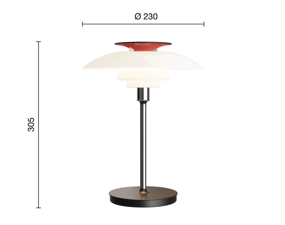 The PH 80 portable lamp continues the timeless legacy of Danish designer Poul Henningsen and his iconic three-shade system, which ensures even light without glare.
