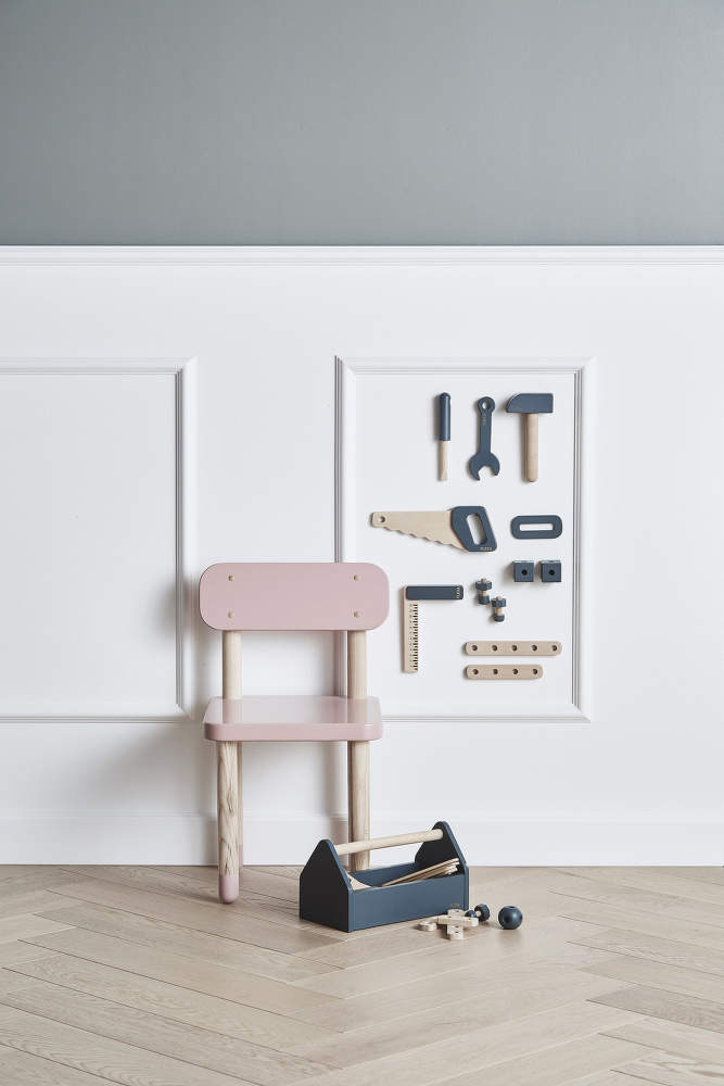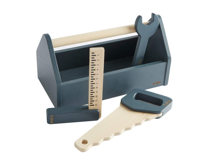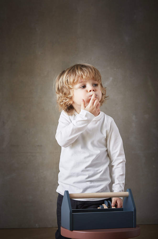 Box with wooden tools for small handymen. The wooden box with handle looks almost like the real one, but in smaller dimensions. You can buy another set of tools for the box. To ensure that playful crafting that encourages fine motor skills and imagination is not missing anything, a wooden workbench for children is also available in the Play Collection.