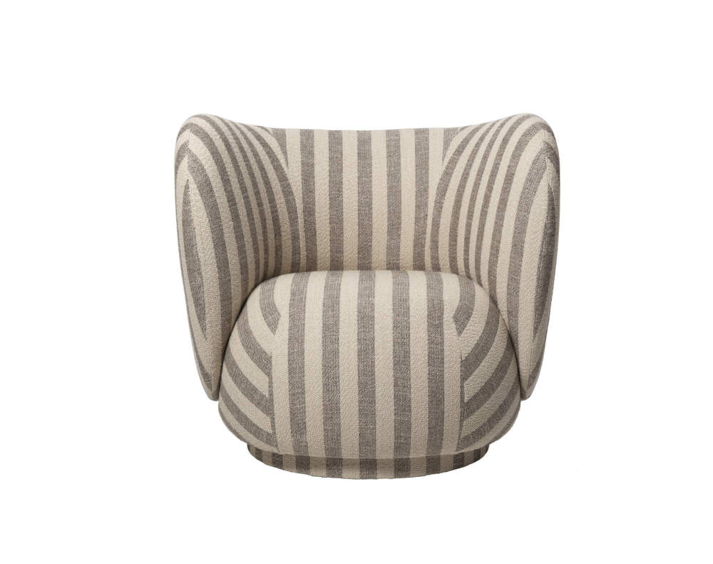The design lounge chair is a part of the Rico collection by Ferm Living. The collection combines curves and volume in a classic style that adds elegance and comfort to the lounge chair.
