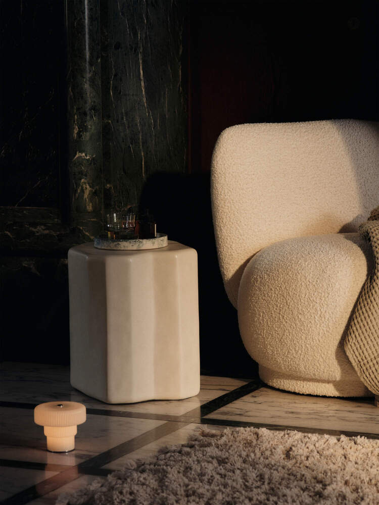 The design lounge chair is part of the Rico collection by Ferm Living. This organic series combines curves and volume in a classic style, adding elegance and comfort to the chair. The Lounge Piccolo variant is a more compact version of the classic chair, retaining its shape and pleasant feeling of comfort, but thanks to its smaller dimensions, it is also suitable for interiors with limited space.