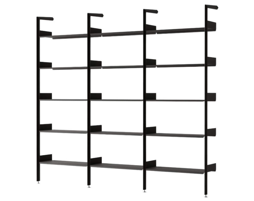 Minimalist Rombe shelving system in configuration A (IF1+IF4), created for Danish brand &Tradition by Industrial Facility. Finish: anthracite brackets and shelves.