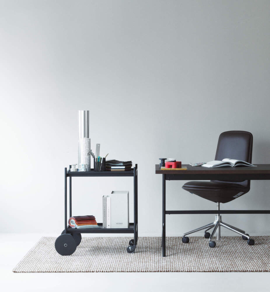 The Rul table can serve as a serving table, bar cart, side table next to the sofa, or as a mobile storage solution in an office or studio. It is available in several other colours.