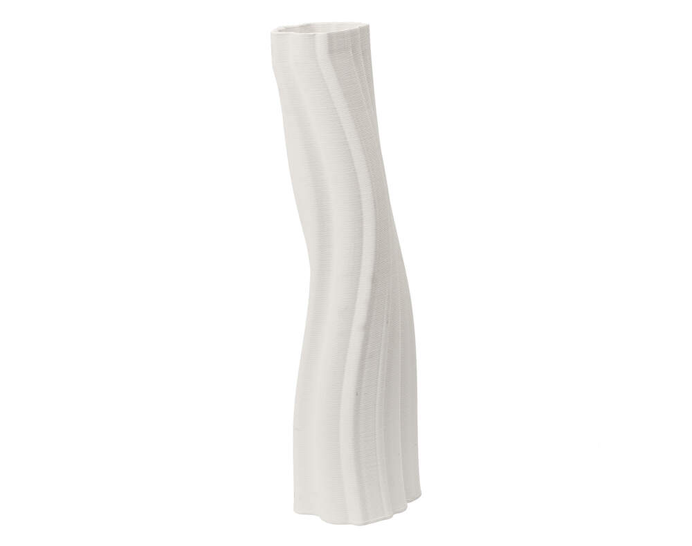 The vase is made from unglazed stoneware and is produced using 3D printing, which allows for its characteristic structure with fine details. The natural surface of the material enhances its authentic look, and due to the production process, slight variations between pieces may occur.