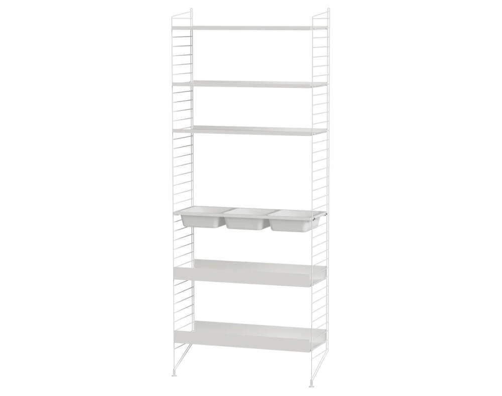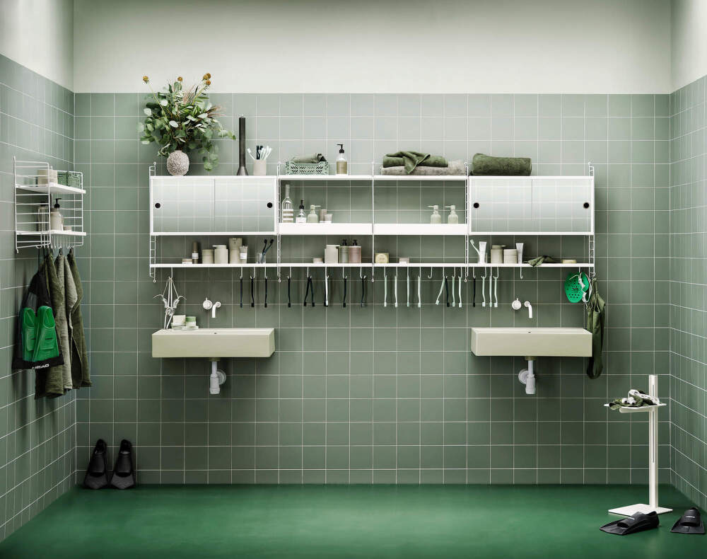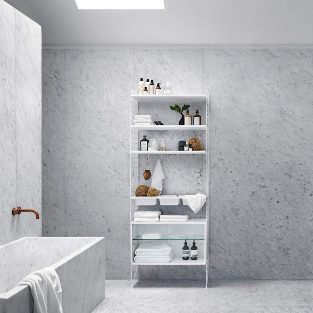 Classic but modern, this Bathroom L combination from String is perfect for small bathrooms. The practical shelves can hold all your toiletries and towels that you need to have close at hand. The shelf with bowls provides secure storage for small items such as rubber bands, hair clips, or small bottles.