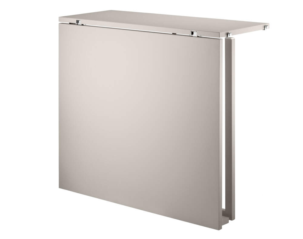 The String System side table is compatible with the 30 cm deep side panels from the same collection. The folding table, which can accommodate up to three chairs, is a great alternative to a small kitchen dining table or work table. When the table is folded, the resulting 30 cm deep storage space can be used.