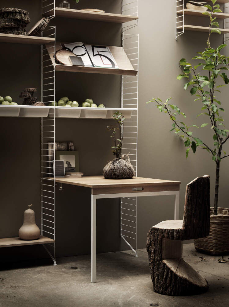 Whether you work from the office or at home, the minimalist Workspace C Shelving Set from String offers a stylish solution to cover all your needs. This combination is a great choice, especially for smaller spaces. It is elegant, simple and does not take up too much space. All important documents can be conveniently stored in the practical cabinet with drawers.