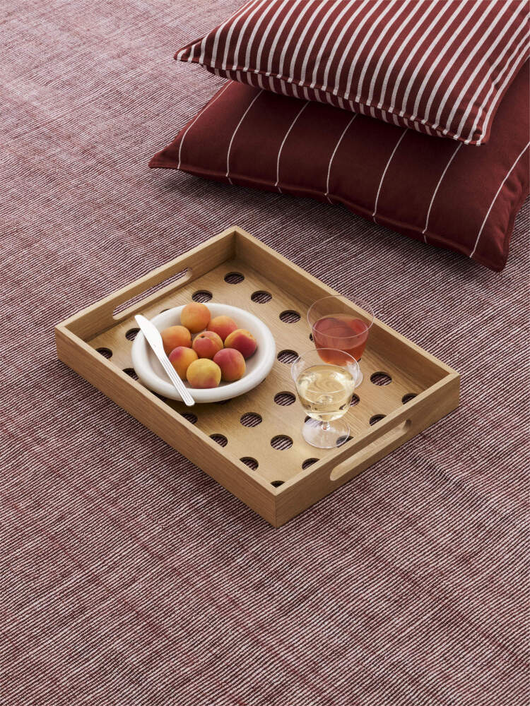 The Terrazza dot tray is a practical accessory designed for everyday use both indoors and outdoors. Its simple, functional form is complemented by a perforated base, raised edges and cut-out handles, making it easy to handle and carry.