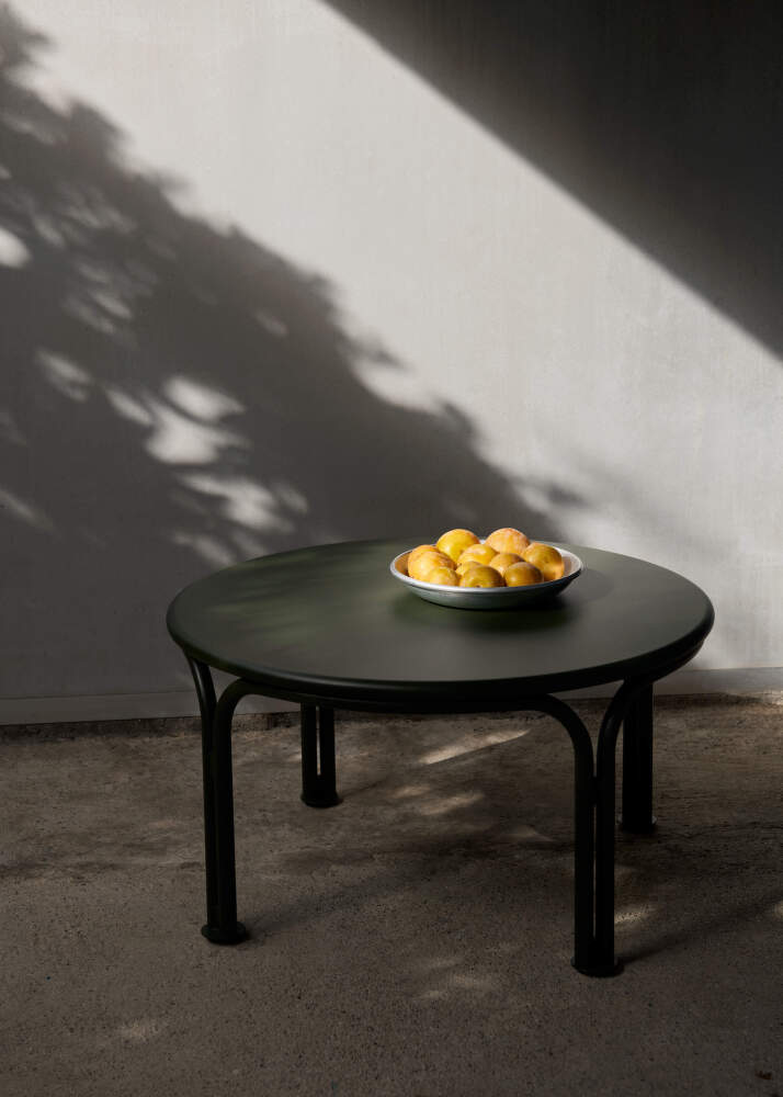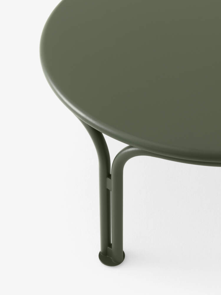 Durable steel Thorvald SC108 outdoor coffee table from Danish brand &Tradition, designed by Space Copenhagen. Colour: diameter 70 cm, bronze green.