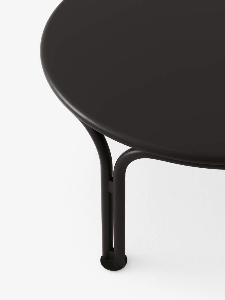 Durable steel Thorvald SC108 outdoor coffee table from Danish brand &Tradition, designed by Space Copenhagen. Colour: diameter 70 cm, warm black.