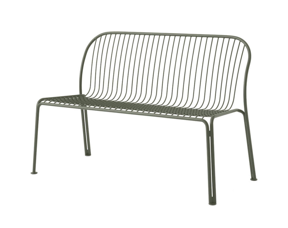 Durable steel Thorvald SC111 outdoor dining bench from Danish brand &Tradition, designed by Space Copenhagen. Colour: bronze green.